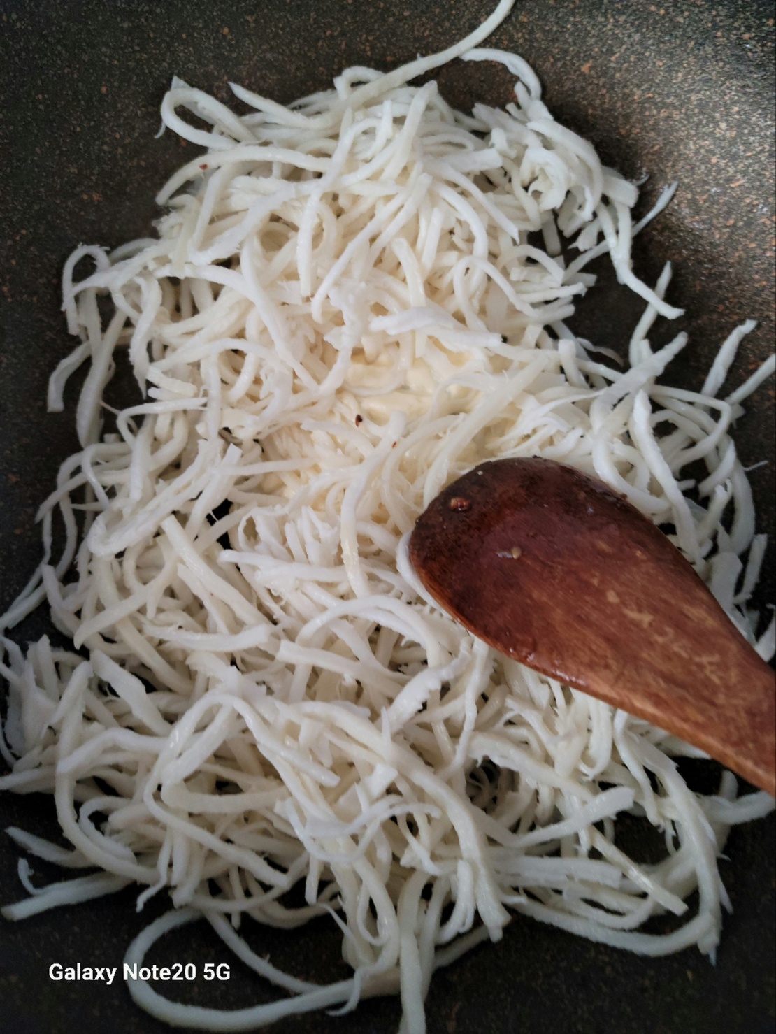 마요네즈에 잘 버무린 진미채를 우선 볶아줍니다. 수분도 다 날아가고 어느 정도 마요네즈 코팅이 되면 만들어놓은 양념장을 넣어 무쳐주면 완성되어요.