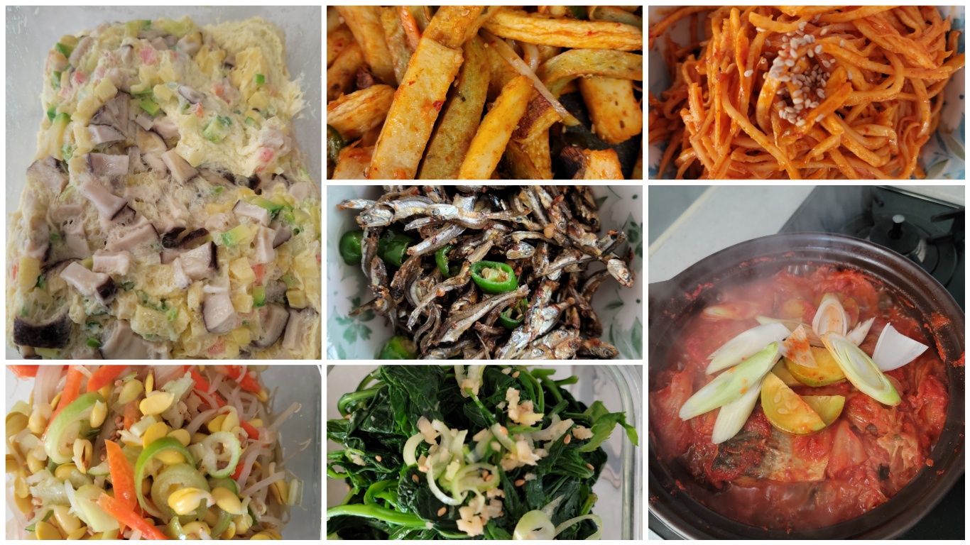냉장고에 있는 재료로 7가지 반찬 2시간 정도의 시간을 들여 만들었네요.