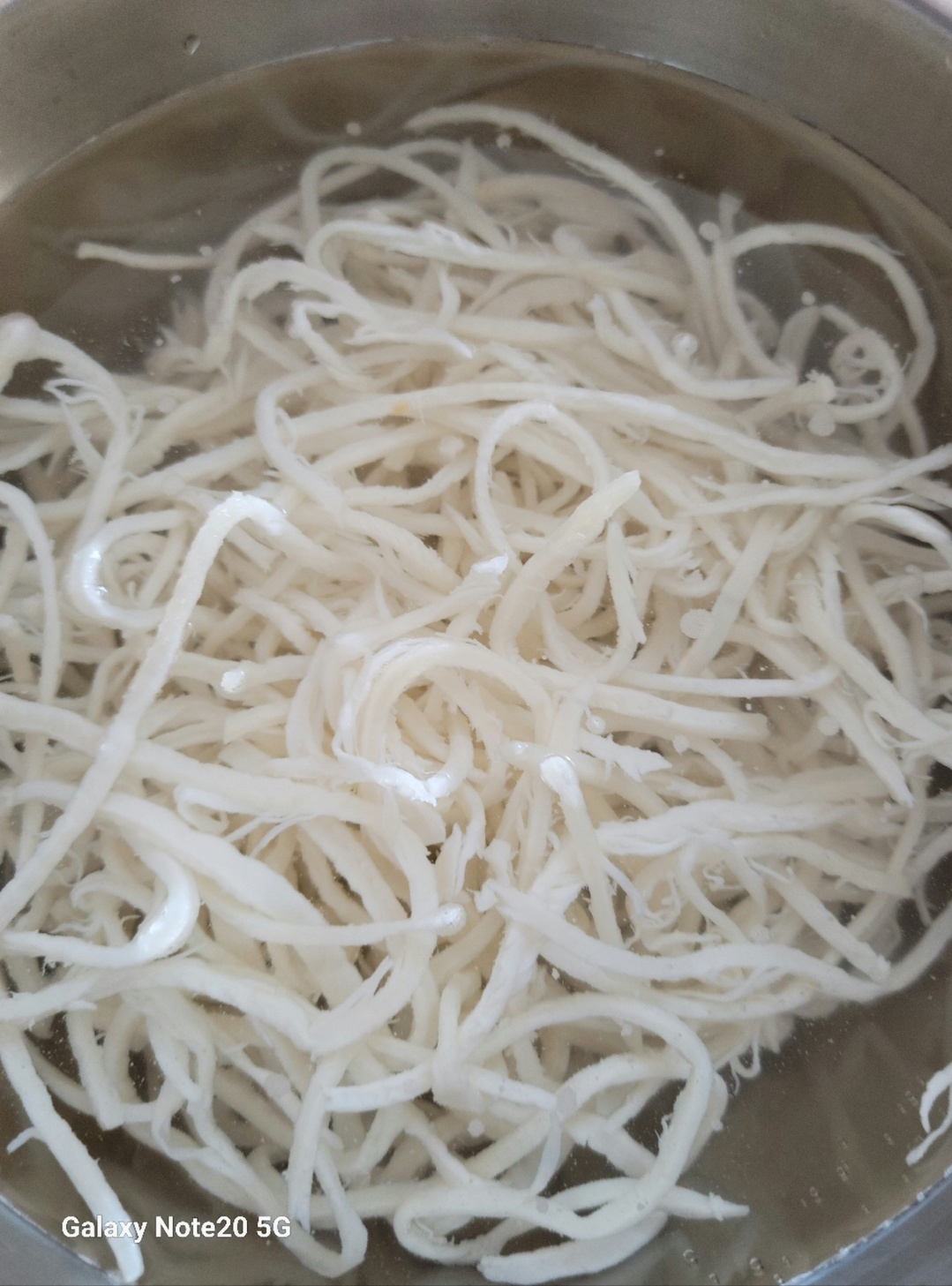 냉동실에 잠자고 있던 진미채를 물에 살짝 담가둡니다. 야들해지면 건져내어 적당량의 크기로 잘라주세요.