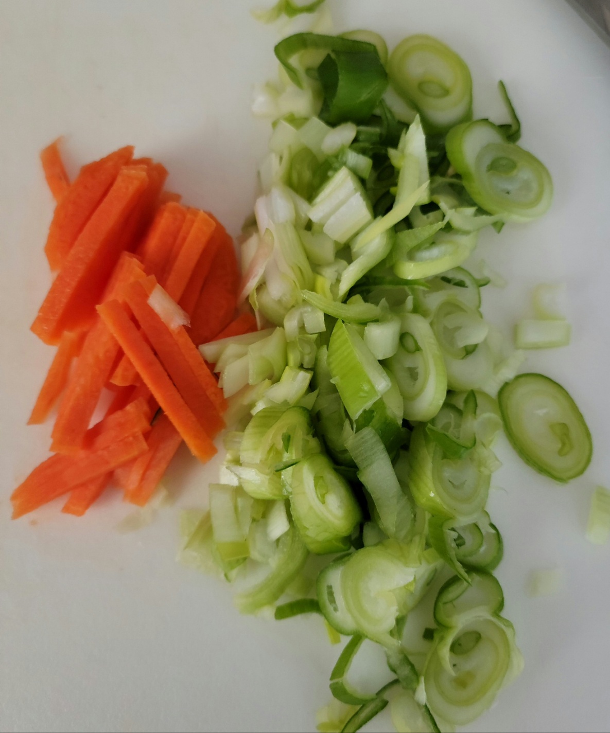 데치는 동안 당근과 파를 썰어서 준비해 둡니다.