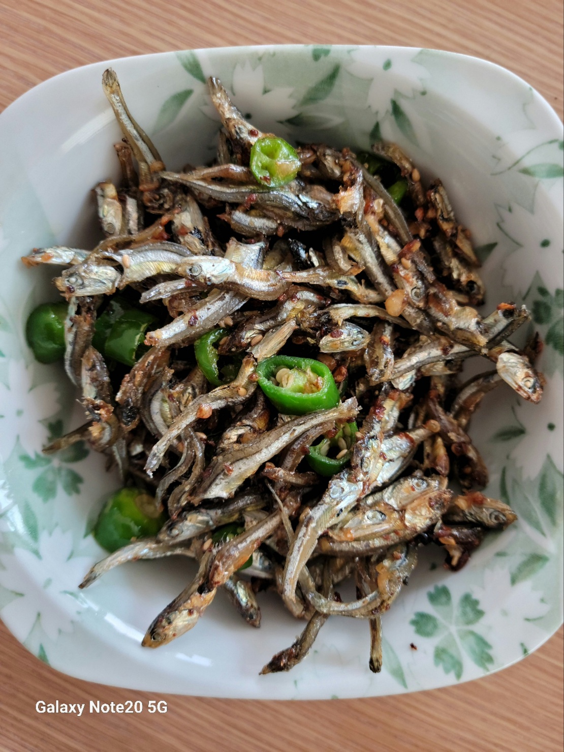 식용유 적당히 넣고 마늘로 향을 낸 후 미리 볶은 멸치를 넣고 어느 정도 색이 나오면 간장과 설탕을 약간씩 넣은 후 청양고추 넣고 볶으면 완성입니다. 마무리로 참기름과 깨소금으로 고소함을 살려주면 됩니다. 멸치 볶음은 처음에 할 때 불조절과 타지 않게 잘 섞어주는 게 포인트예요.