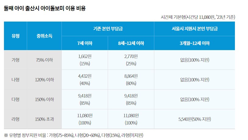 - 소득기준 : 중위소득 150% 이하의 가정 및 150% 초과 가정 차등지원