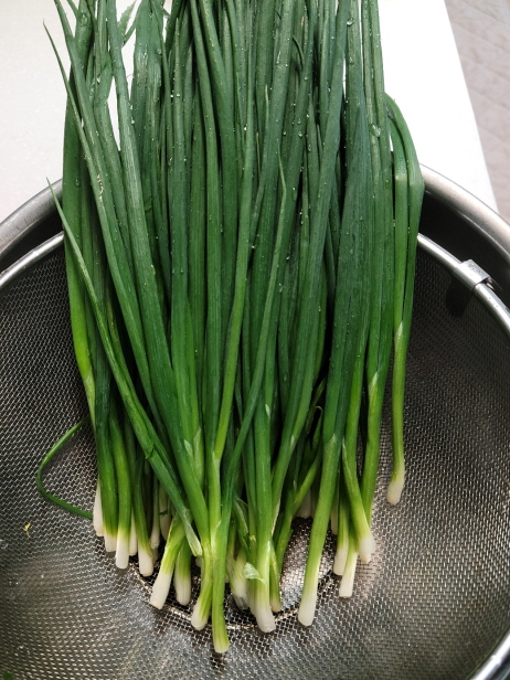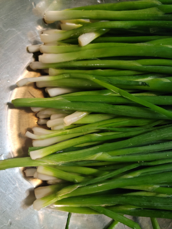 1. 쪽파 1단을 깨끗하게 다듬어 물기를 뺍니다.
