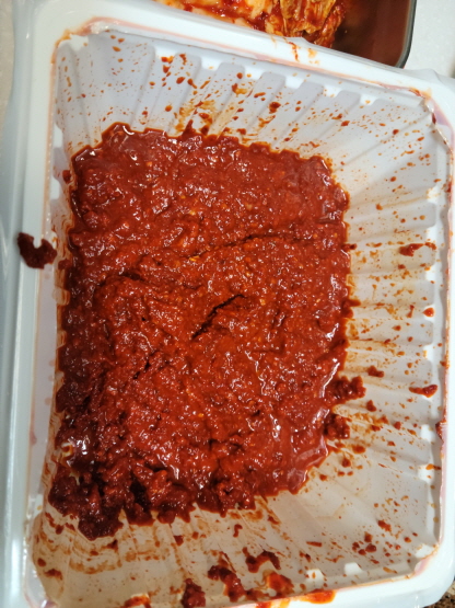 제법 많은 양념에 버무려져 있어 이 상태로 먹으면 위에 구멍이 날 수도 있어요.