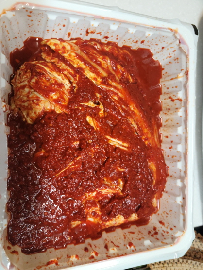 제법 많은 양념에 버무려져 있어 이 상태로 먹으면 위에 구멍이 날 수도 있어요.