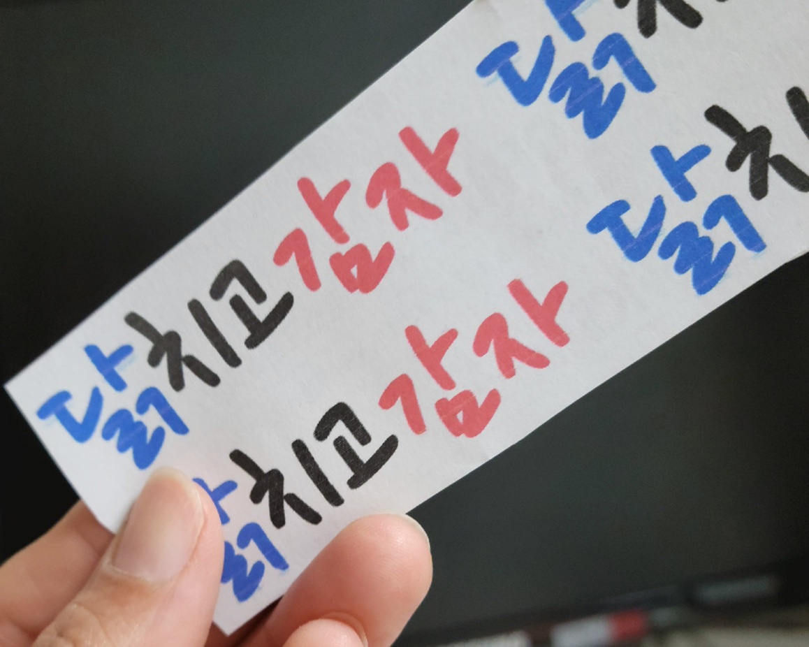 다음 주에 학교에서 축제가 있어 닭치고 감자 부스에서 홍보용으로 액자를 만들어 사용하기 위해 제작하였습니다. 인스타그램 느낌으로 예쁘게 사진 찍을 것을 생각하니 벌써 기분이 좋네요. 예쁜 글씨를 잘 쓰지 못해도 예쁜 폰트 찾아 잘 만들면 누구보다 전문가처럼 만들 팁 공개해 드립니다.