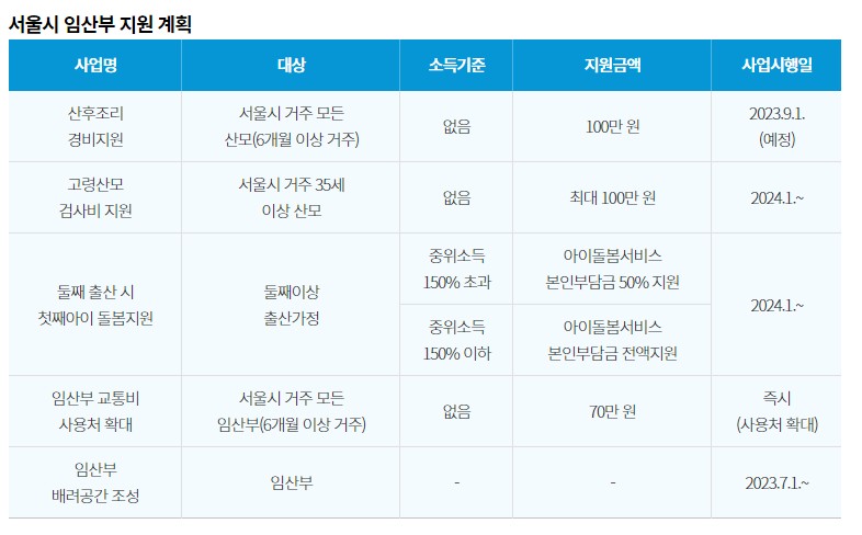 [산후조리비] 서울시 모든 산모에 100만원 지급