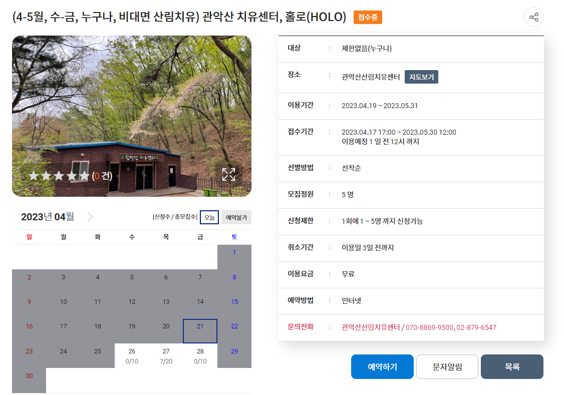 - 신청방법 : 공공서비스예약접수, 현장접수도 가능