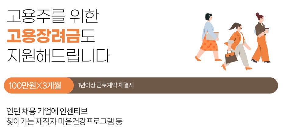 인턴십 고용장려금은 인턴십 참가자가 인턴십 종료 후에도 회사에서 안정적으로 일할 수 있도록 정규직을 채용한 기업이나 1년 이상 근로계약을 체결한 기업에 월 100만 원을 지급하는 사업입니다.