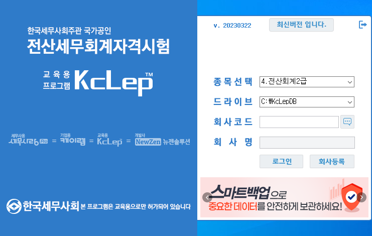 기출문제에서는 주어진 업체의 회사 코드번호가 부여되면 시작화면에서 회사코드를 입력한 후 들어갑니다.
